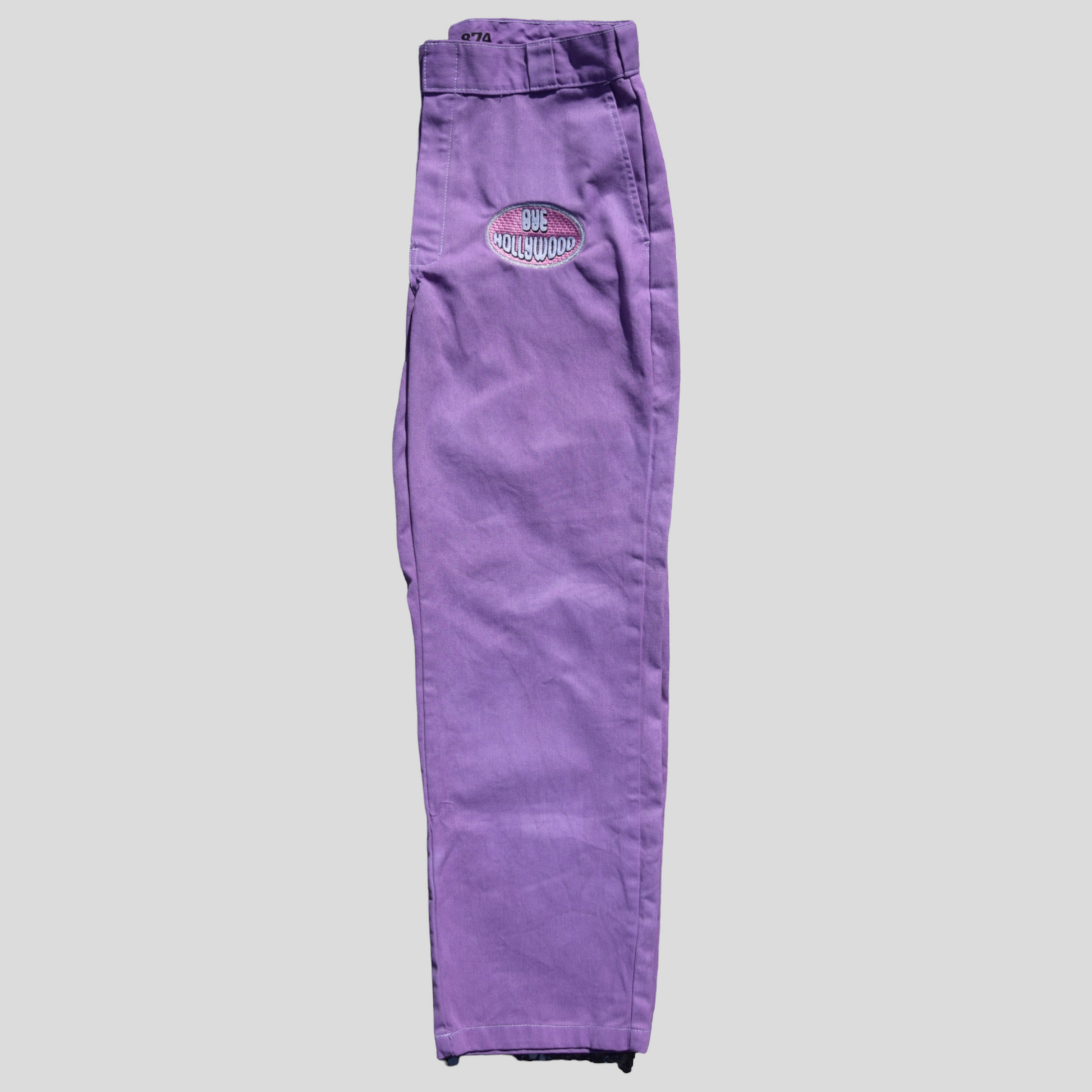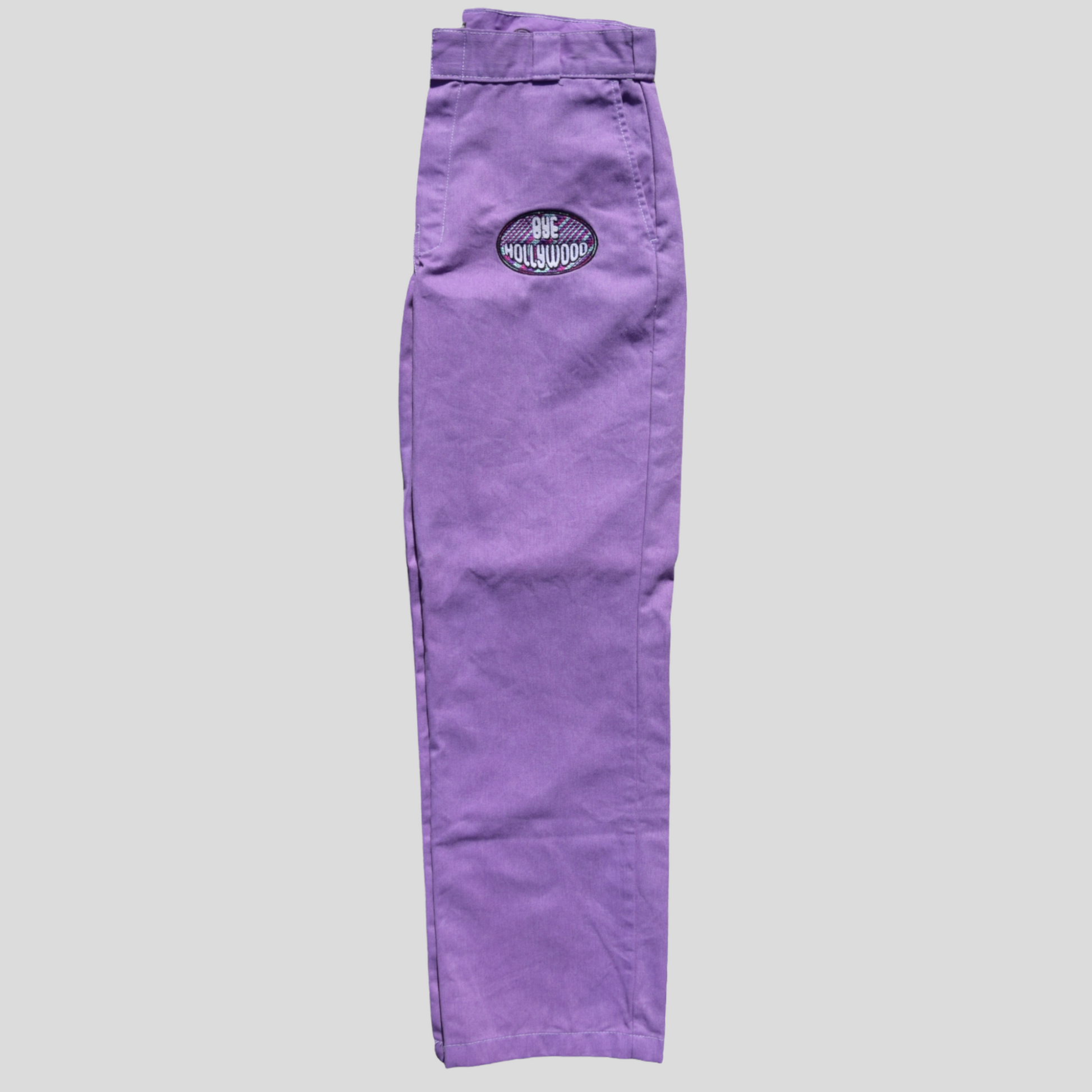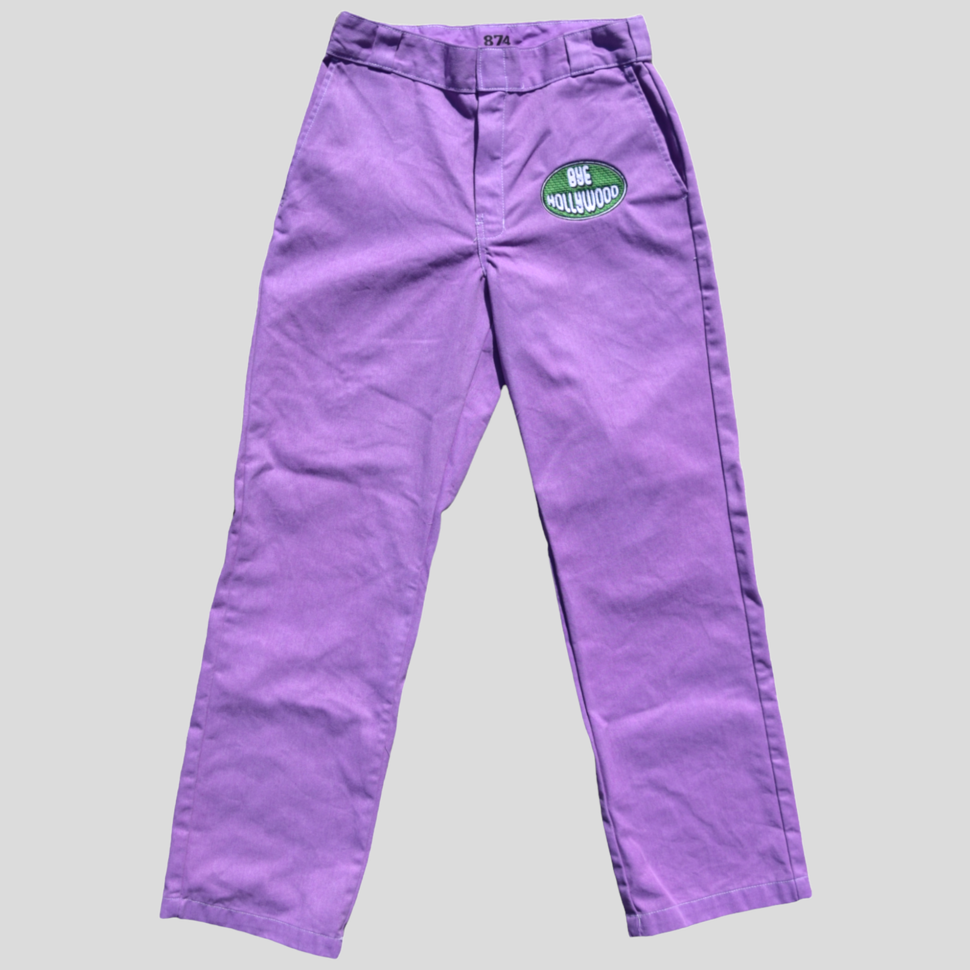 Hand dyed and embroidered Bye Hollywood pants. Each one is has a Bye Hollywood embroidered patch that is completely unique. We worked with the classic and timeless 874 dickies to create the perfect pant for you!