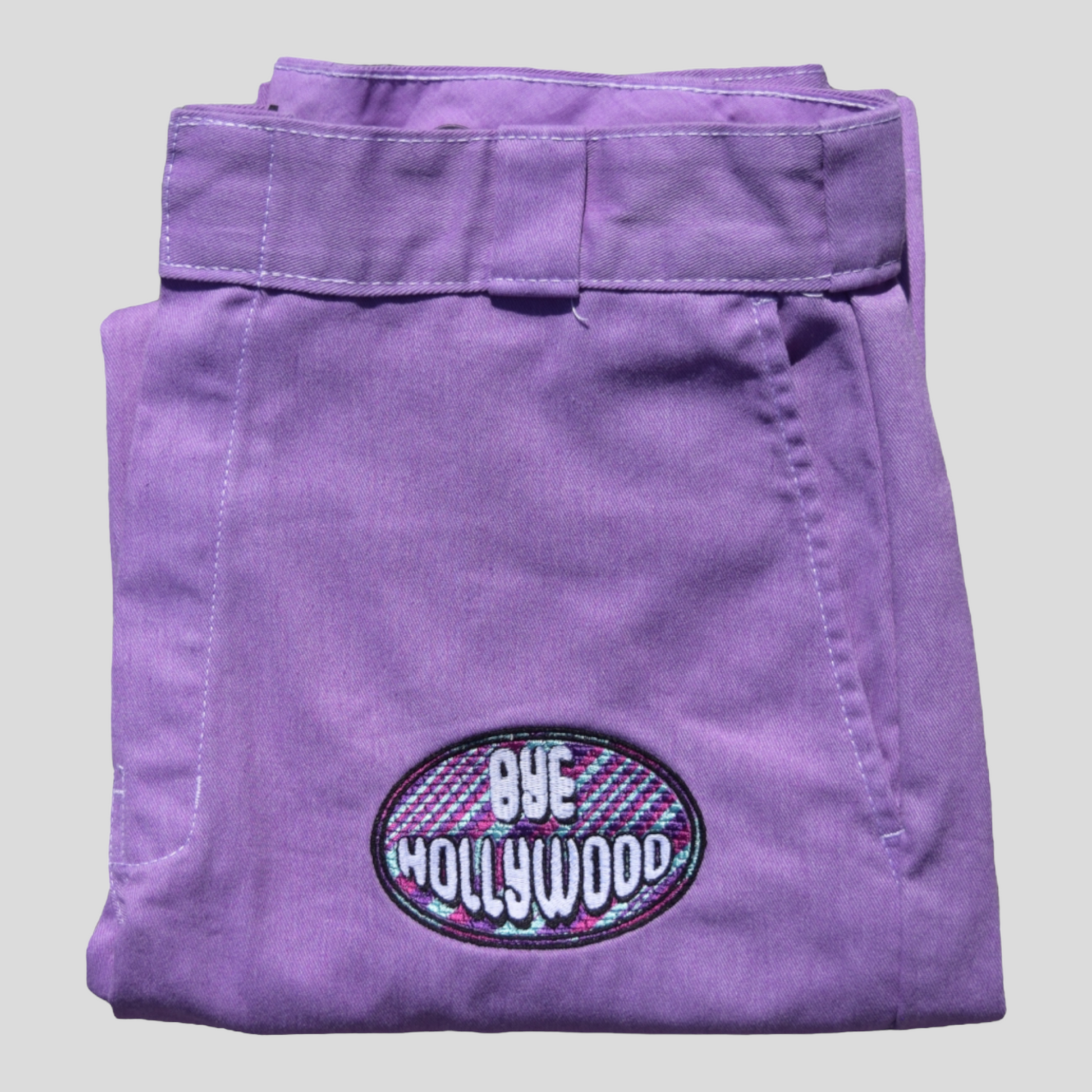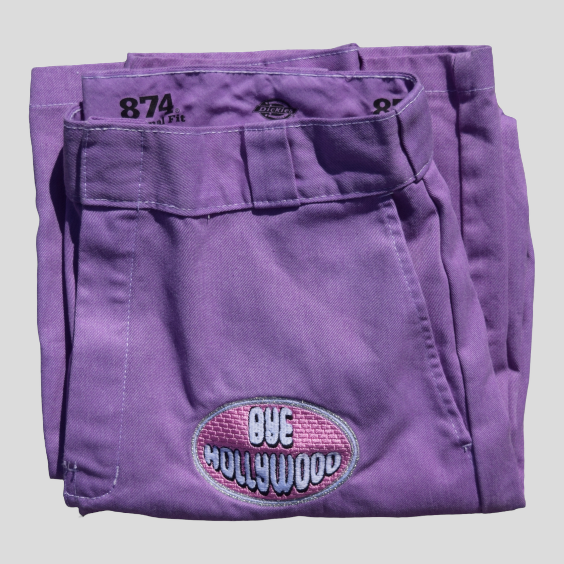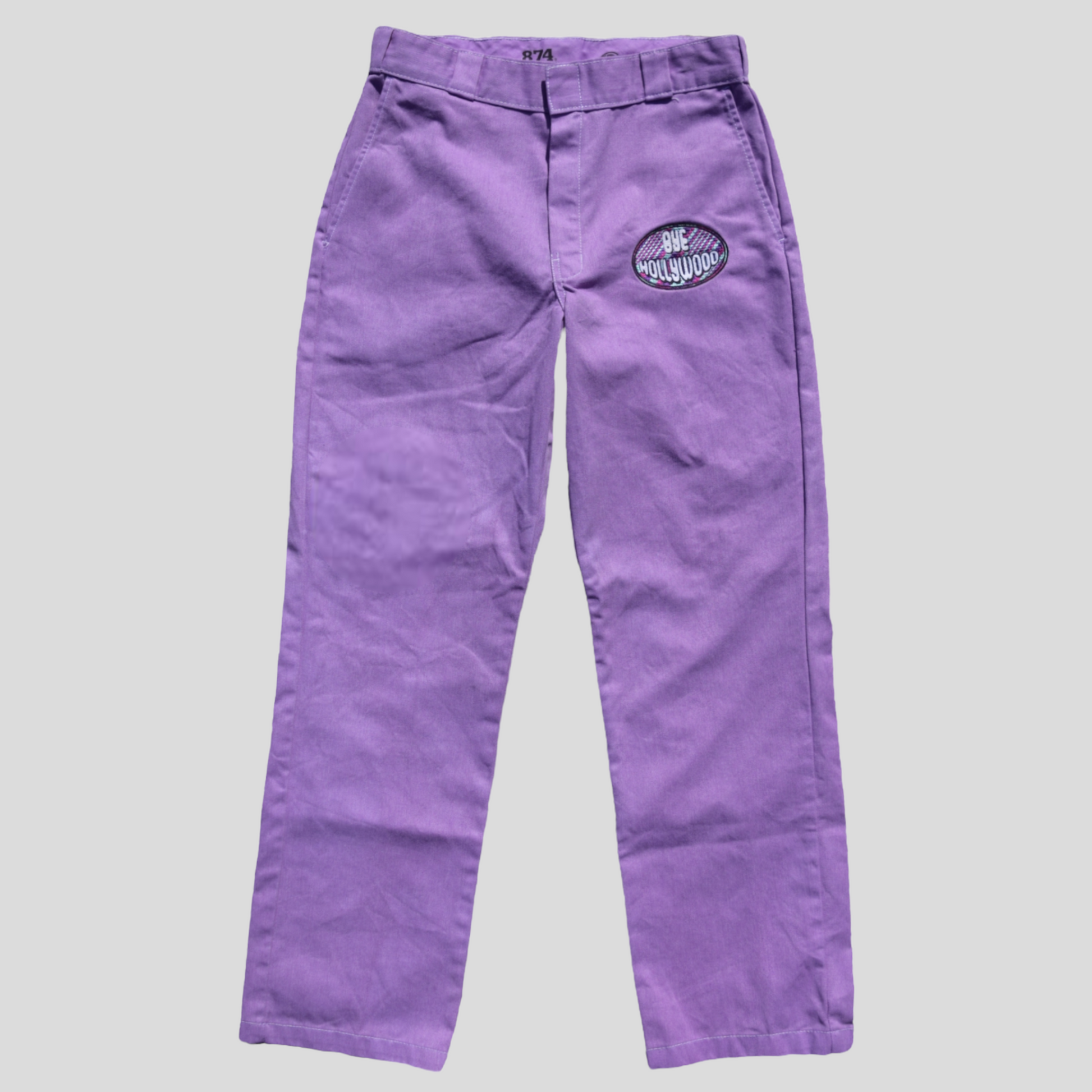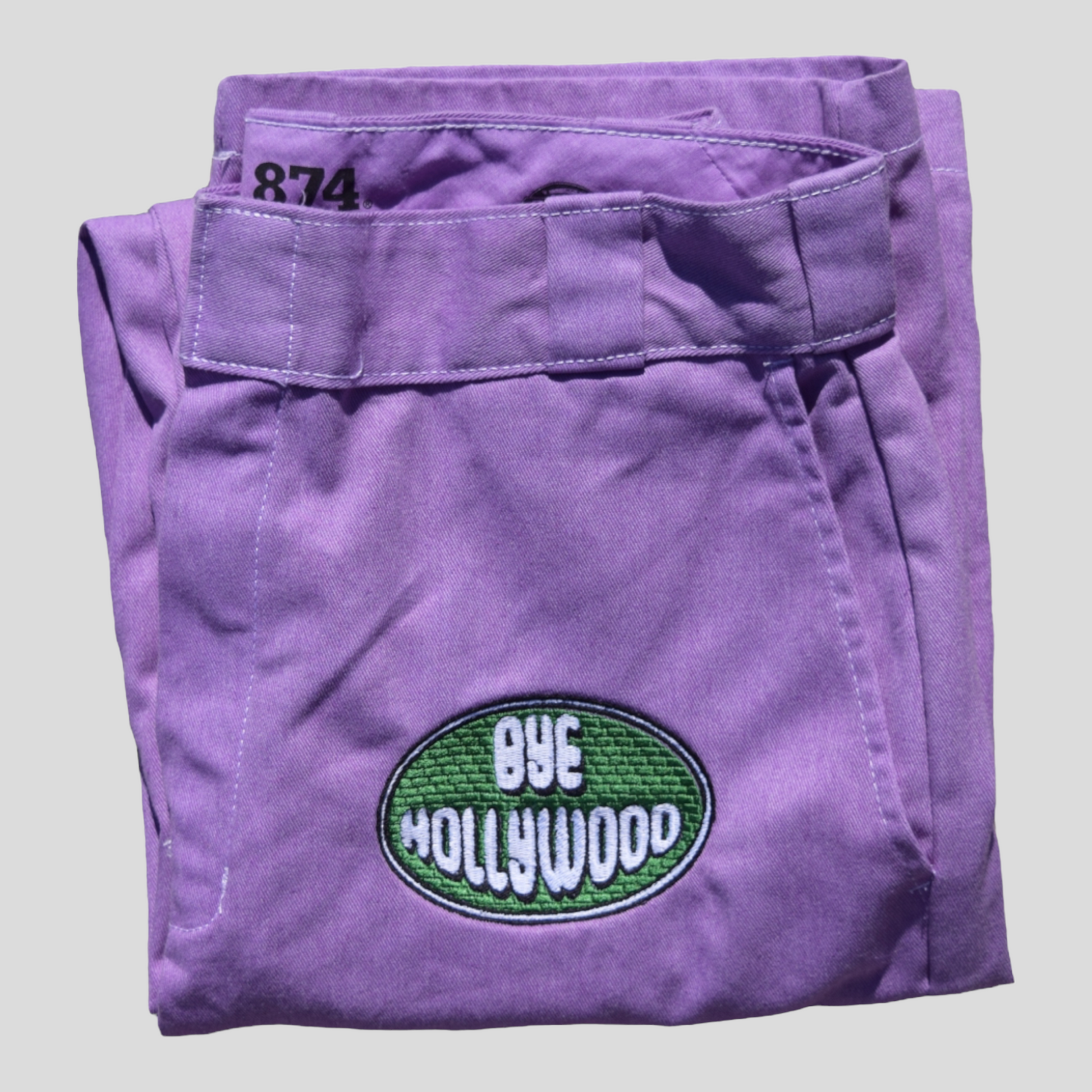 Hand dyed and embroidered Bye Hollywood pants. Each one is has a Bye Hollywood embroidered patch that is completely unique. We worked with the classic and timeless 874 dickies to create the perfect pant for you!